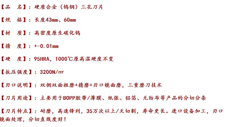 鎢合金三孔刀片,割薄膜刀片,破絲刀片